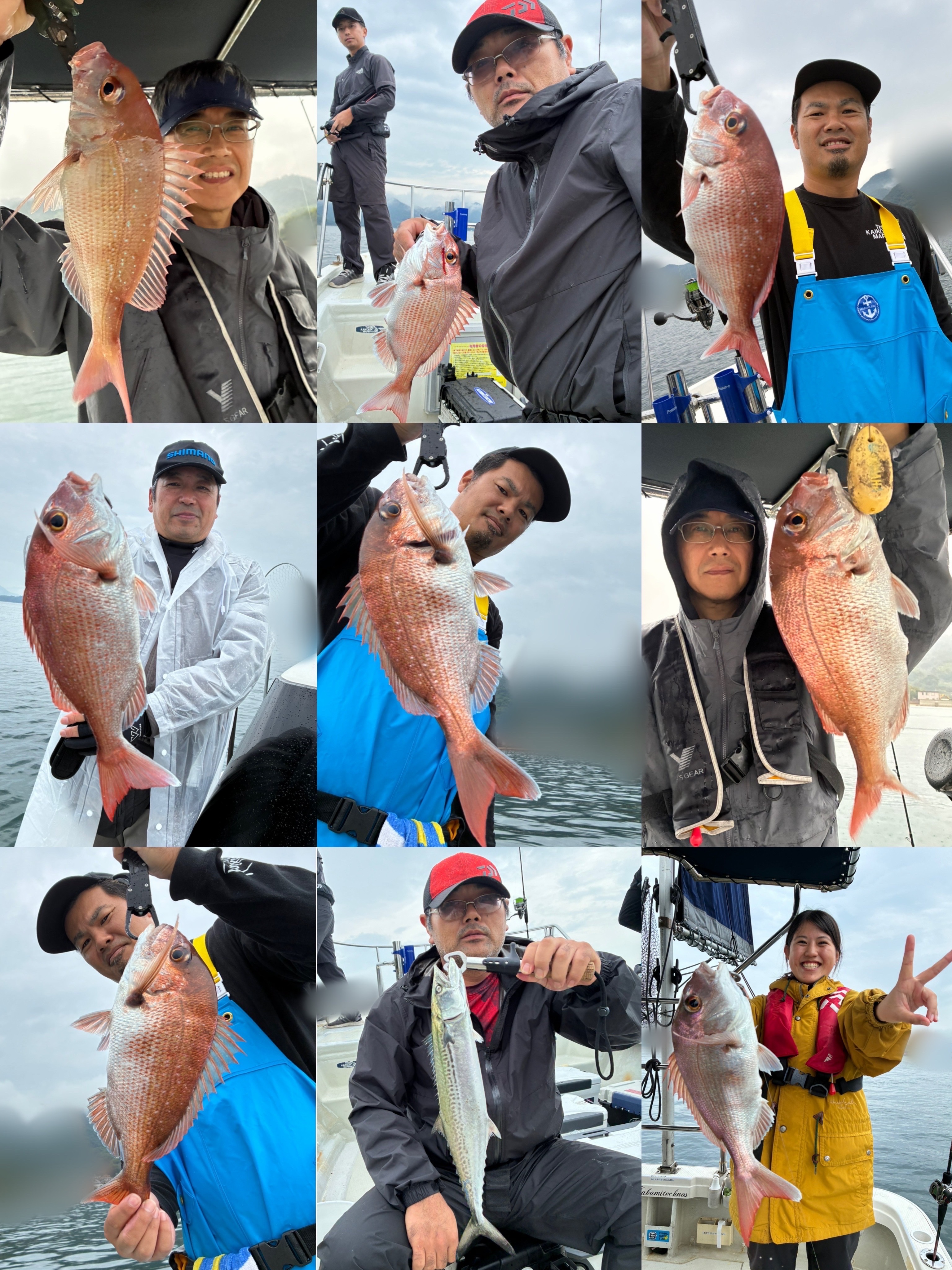 本日はタイラバで行って来ました🚣♀️ 到着から♪ ダブル…トリプルHIT……当たり前♪♪ なんですがぁ😅 虚しく小型ばかり🥲 潮止まり以外は喰いっ放し♪♪♪ なんですがぁ😂 結局、数枚キロ鯛でギブアップ🎣 本日の釣果… 鯛 〜45cm サゴシ キジハタ(アコウ) クロゴチ ショウサイフグ サバフグ ワニゴチ エソ 竿頭23枚🌈 …でした♫ 皆さん雨の中ありがとうございました🙇 ご乗船ありがとうございましたm(_ _)m Fishing&Cruise… 海航丸 船長 山田 ☎080-3893-8094 #海航丸 #福山市 #釣り船 #釣り #釣り好きな人と繋がりたい #ツリグヤ瀬戸店 #釣具のポイント #ワインド #海鮮丼 #ジギング #デート #SLJ #BLJ #青物 #レジャックス #ナブラ #初めてでも #初心者でも #ファミリーフィッシング #子供でも #しまなみサイクリング #鬼レンチャン #全国釣り場 #笑顔 #笑い #仲間 #絆 #家族 #一期一会
