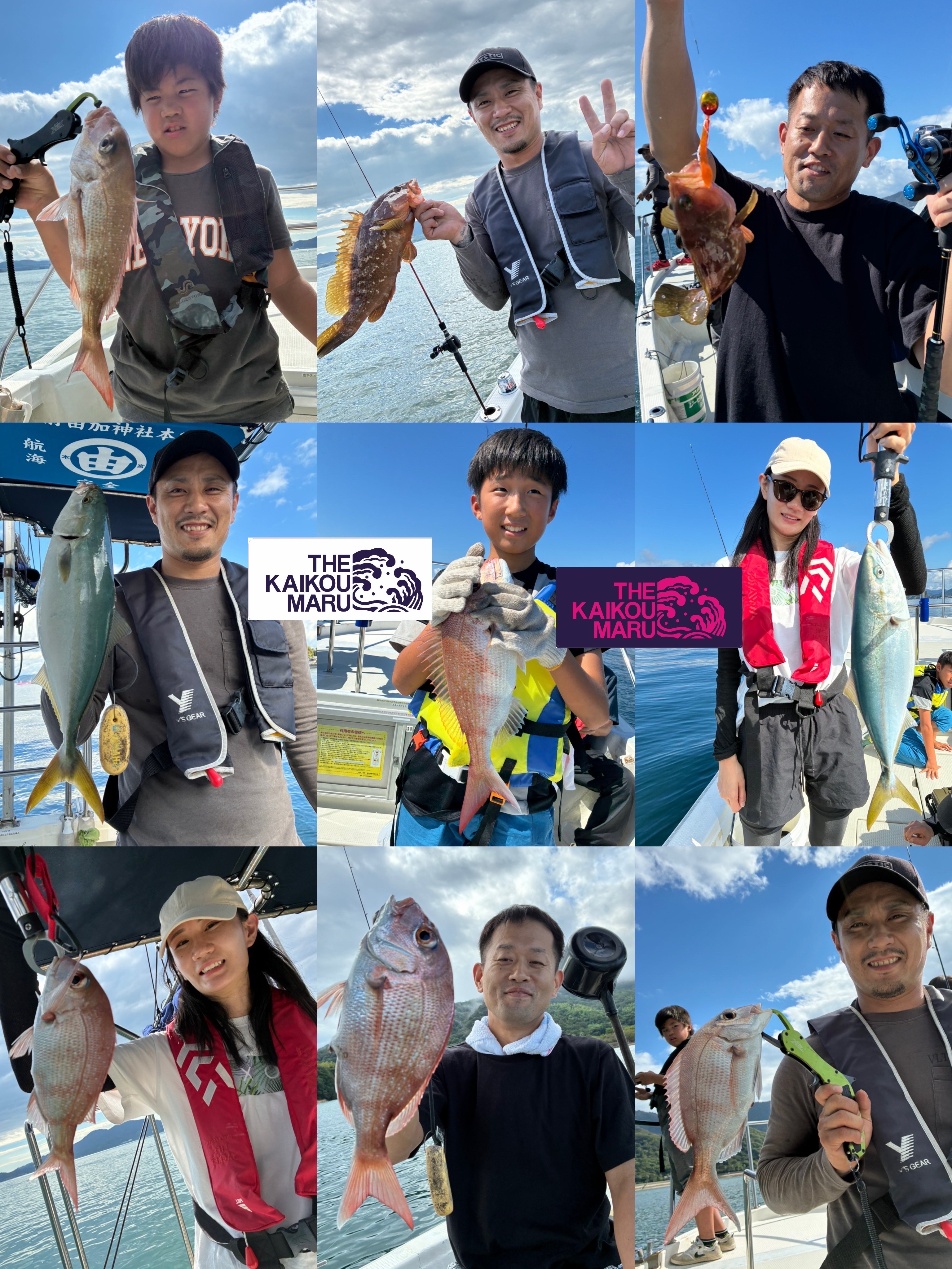 本日はトリプルファミリーフィッシングで行って来ました🚣♀️ 前回キス&アジで爆釣体験したので、今回はハードル上げてタイラバ&青物へいざっ🚣♀️💨 1流し目から小型ではありますが♪ ゆっくり出船過ぎてジアイ短く終了で青物へ🚣♀️💨💨 ナブラ〜♪♪ 何処へ行ってもナブラ〜♪♪♪ サワラや大型連発♪♪♪♪ ですが😅 ダブルHIT…バラし……ブレイク………オマツリやサワラカッター多発🥲 少ないのはキャッチ率🤣 諦めない海航丸に御光が差し、皆さん笑顔になった所で気持ち良く納竿🎣 本日の釣果… 鯛 イナダ(ヤズ) ショウサイフグ キジハタ(アコウ) ワニゴチ ハゼ …でした♫ 皆様、次こそ奴等を退治しに行きましょね😉 ご乗船ありがとうございましたm(_ _)m Fishing&Cruise… 海航丸 船長 山田 ☎080-3893-8094 #海航丸 #福山市 #釣り船 #釣り #釣り好きな人と繋がりたい #ツリグヤ瀬戸店 #釣具のポイント #ワインド #海鮮丼 #ジギング #デート #SLJ #BLJ #青物 #レジャックス #ナブラ #初めてでも #初心者でも #ファミリーフィッシング #子供でも #しまなみサイクリング #鬼レンチャン #全国釣り場 #笑顔 #笑い #仲間 #絆 #家族 #一期一会