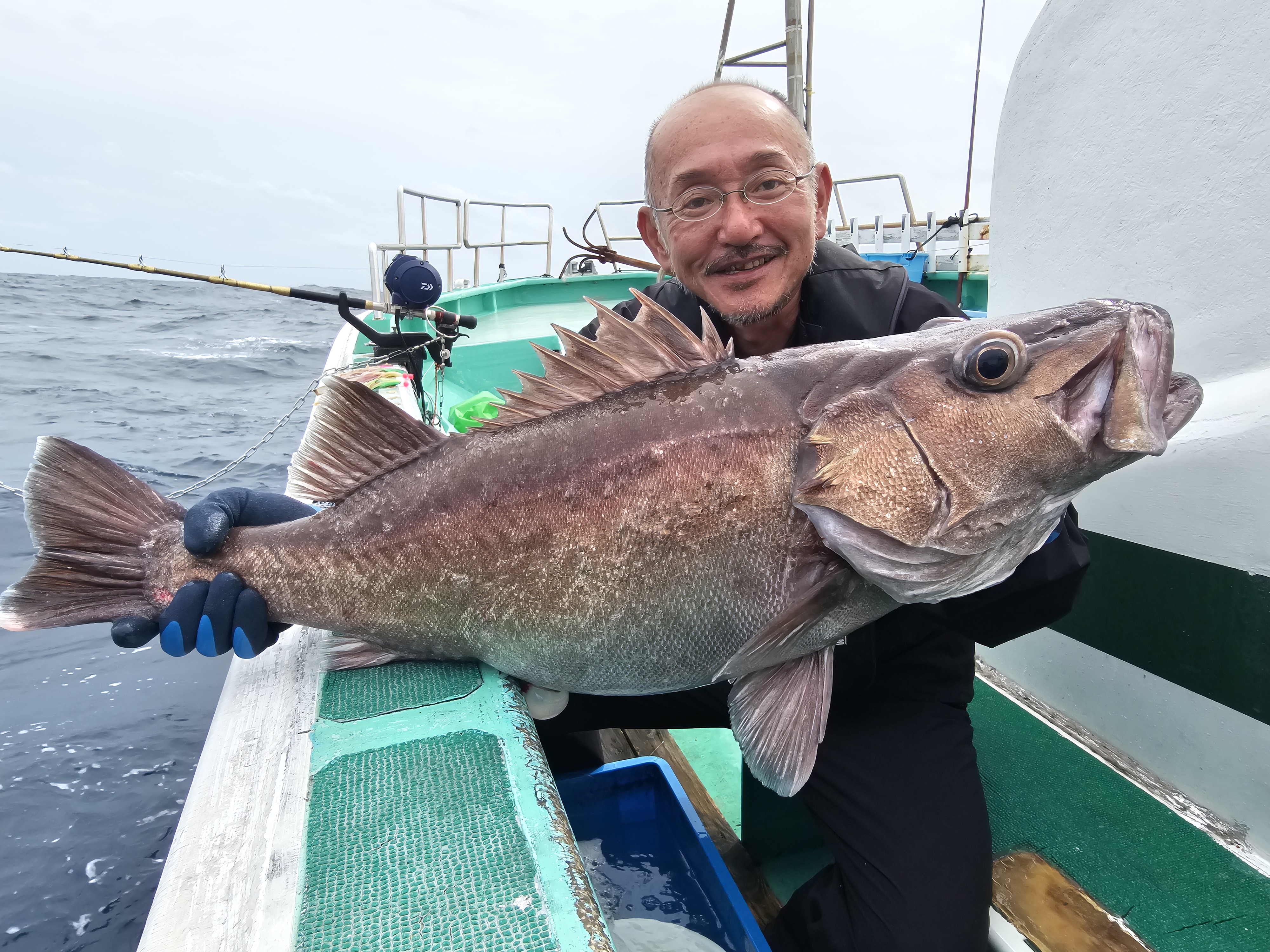 令和7年10/3 アラ狙いで大阪の吉田様と安井様 アラ 74cm 1匹 ユメカサゴ 26-28cm 1-3匹 幻の魚と言われてるアラを狙いに出船。 程よく船も流れて良いかと思ったが、 下の潮が動いてなんでしょうね(汗) 外道も含めて当たりが出ず苦戦。 ポイントも何度も移動するも当たらない。 いつもなら黒ムツも当たるポイントも流すも、 全く当たりすら出ず超苦戦! 次第に東からのウネリも出初めて荒く。 中盤過ぎた頃に、 外道のユメカサゴが4匹+リリースが2匹。 納竿まで20分の時でした。 当たりも鮮明に出て、上がって来たのは本命! それも大きい! その1匹を釣って納竿となりました。 帰港後に計測しました。 貴重な1匹を釣ってくれて有難う~! 重さは5.69kg 潮さえ良くなれば、数も上がると期待です。 水温26.4度~26.0度 @zenkokuturiba