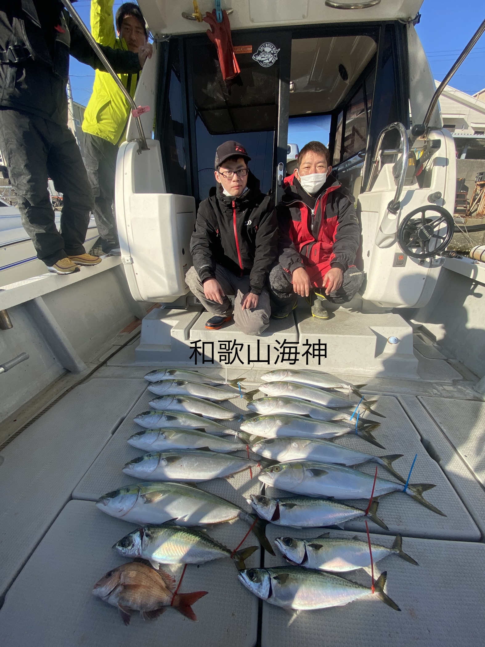 2021-01-18 heyheyship(和歌山市ルアー船ヘイヘイシップ) 釣れた魚: 青物 本日は、ブリ混じりのメジロラッシュ。その後ハマチにかわって…それはそれで楽しく。終始楽しめました。鯛ラバは45センチ程の鯛キャッチ。