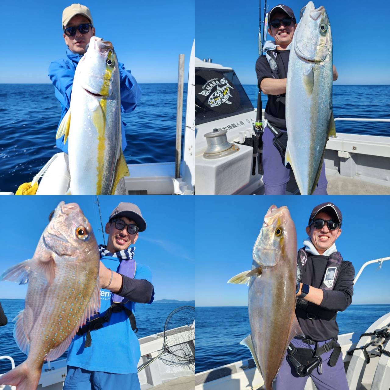 本日青物は前半は渋々でしたが後半はノマセで入れ食い。アマダイは当たり少なく苦戦しました。全員安打出来ませんでしたが全員お土産ができて良かったです。ありがとうございました。また宜しくお願いします。