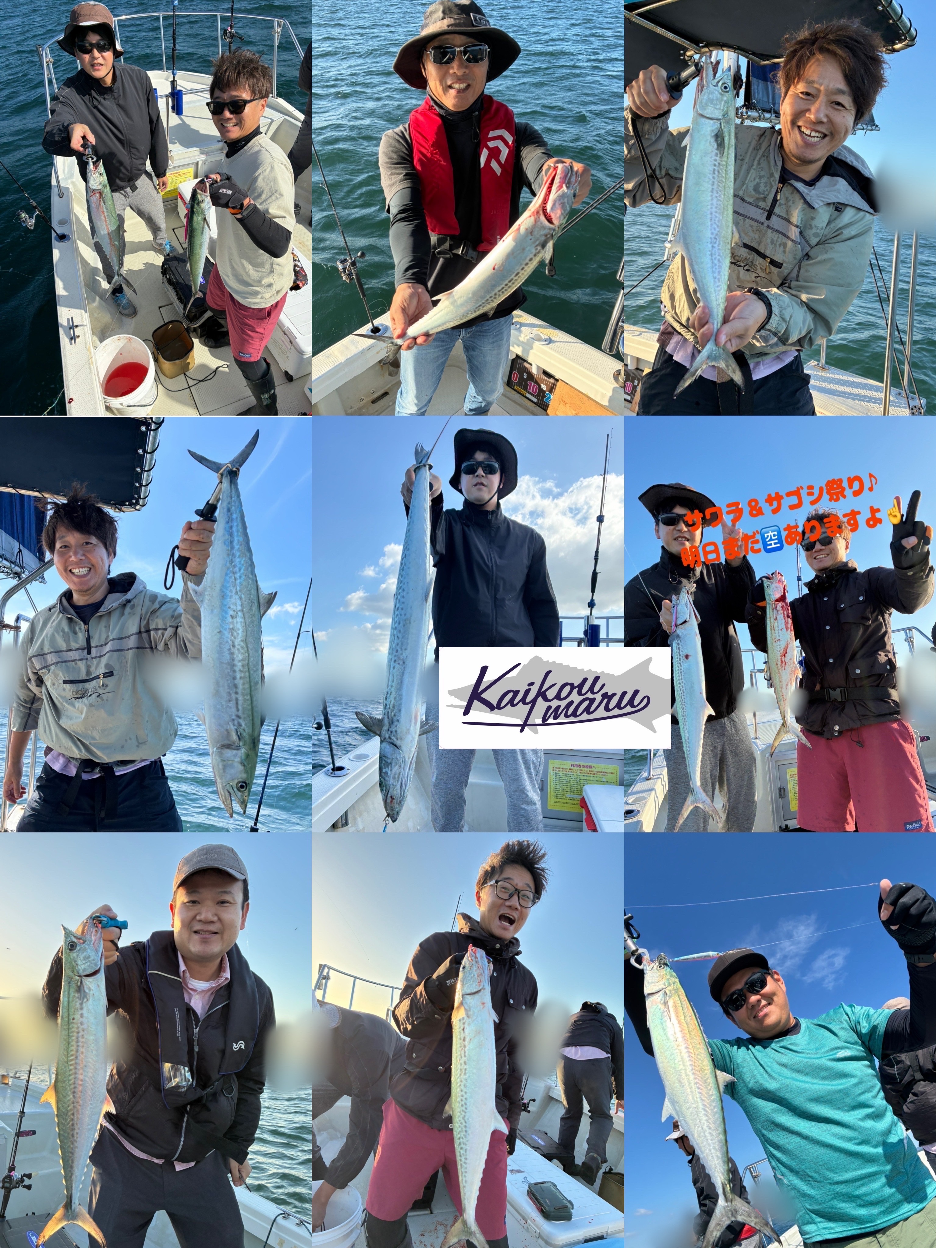 本日(10/12)もライトジギング(SLJ)釣行でした😁 今日は迷わず決めていたポイントへ直行しました🚀 開始間も無くサワラが掛かりますが、タモ入れ前にバラシ・・・ その後は、ハマチやブリがコンスタントに釣れました👍 潮が止まってアタリも無くなったのでポイント移動🚀 船団を避けてベイト探しでしばし徘徊😅 広範囲じゃないけど、おった〜✨✨ 早速、釣りを再開して頂きサワラやサゴシ、ハマチ、ヤズ、マダイにマゴチ、キビレ、トラフグなど色んな魚が釣れました😃 ※写真は釣果の一部です。 本日は、遊漁船「流星」をご利用頂き誠にありがとうございました🙇♂️ またのご利用をお待ちしております😊