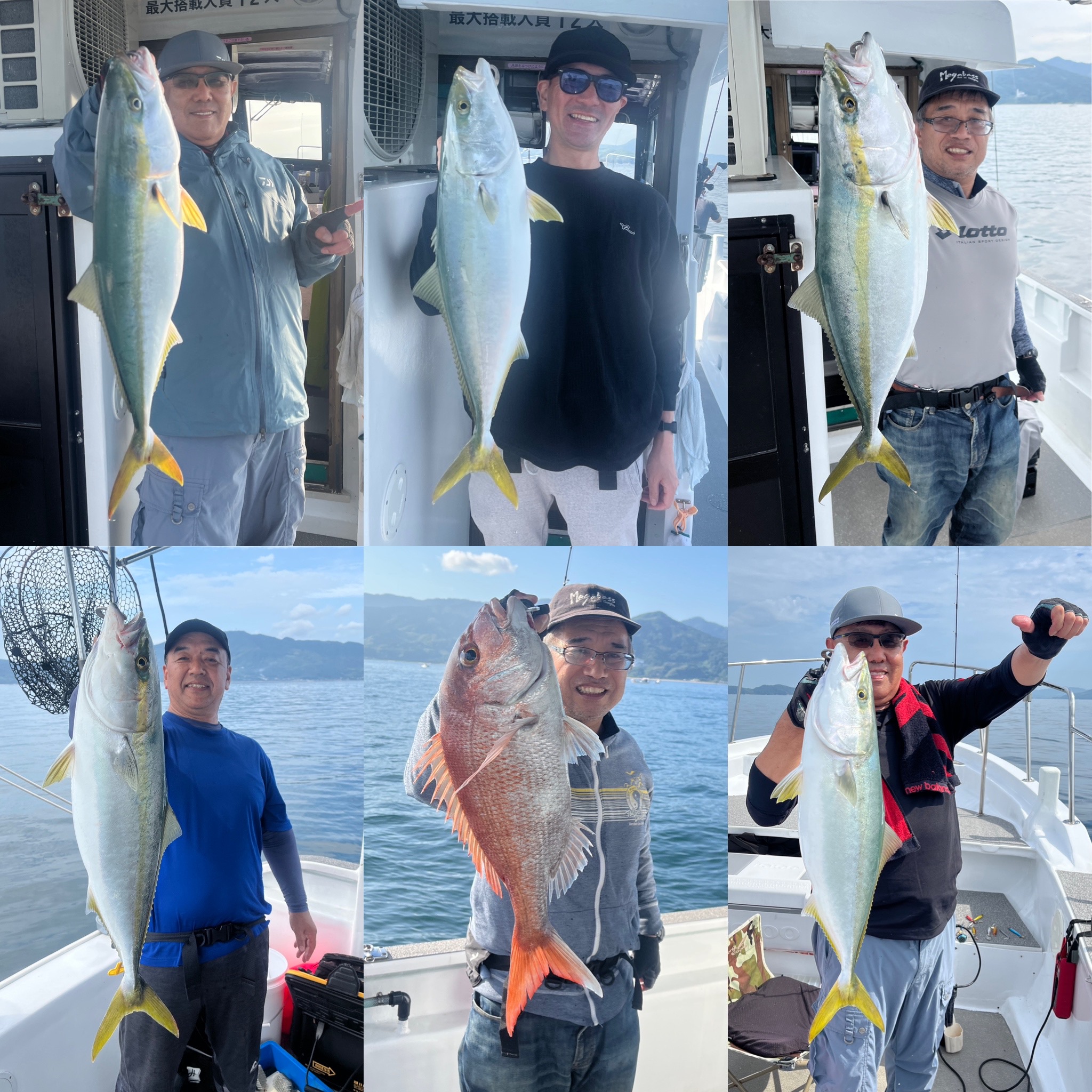 本日(10/12)もライトジギング(SLJ)釣行でした😁 今日は迷わず決めていたポイントへ直行しました🚀 開始間も無くサワラが掛かりますが、タモ入れ前にバラシ・・・ その後は、ハマチやブリがコンスタントに釣れました👍 潮が止まってアタリも無くなったのでポイント移動🚀 船団を避けてベイト探しでしばし徘徊😅 広範囲じゃないけど、おった〜✨✨ 早速、釣りを再開して頂きサワラやサゴシ、ハマチ、ヤズ、マダイにマゴチ、キビレ、トラフグなど色んな魚が釣れました😃 ※写真は釣果の一部です。 本日は、遊漁船「流星」をご利用頂き誠にありがとうございました🙇♂️ またのご利用をお待ちしております😊