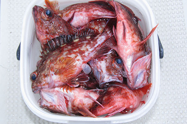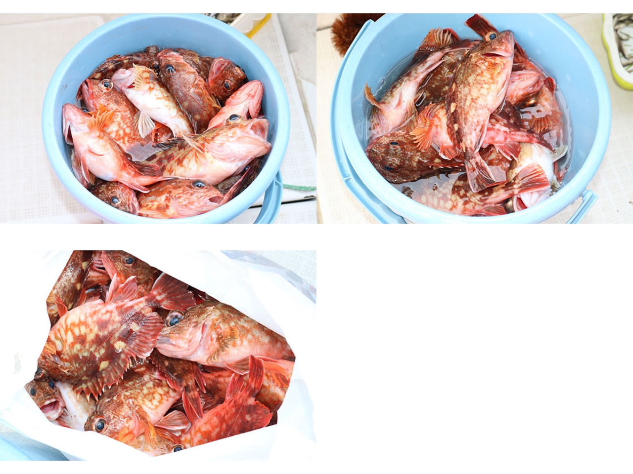 風が残ってるので風裏限定で。 少し暗いうちは鯛がよくアタってきます。 鯛はすぐに全員安打。 少ししてようやくアコウが釣れ始め3人同時ヒットも。 アコウ40up、鯛も数枚ずつ釣れ、まずまずな釣果になりました。 今日も一日ありがとうございました。
