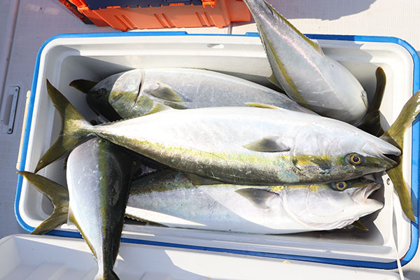 本日青物オンリーで出船しました。ノマセは入れ食い、ジグは数本でした。1日便の予定でしたが風も強くクーラー満タンになったんで早上がり。ありがとうございました。また宜しくお願いします。