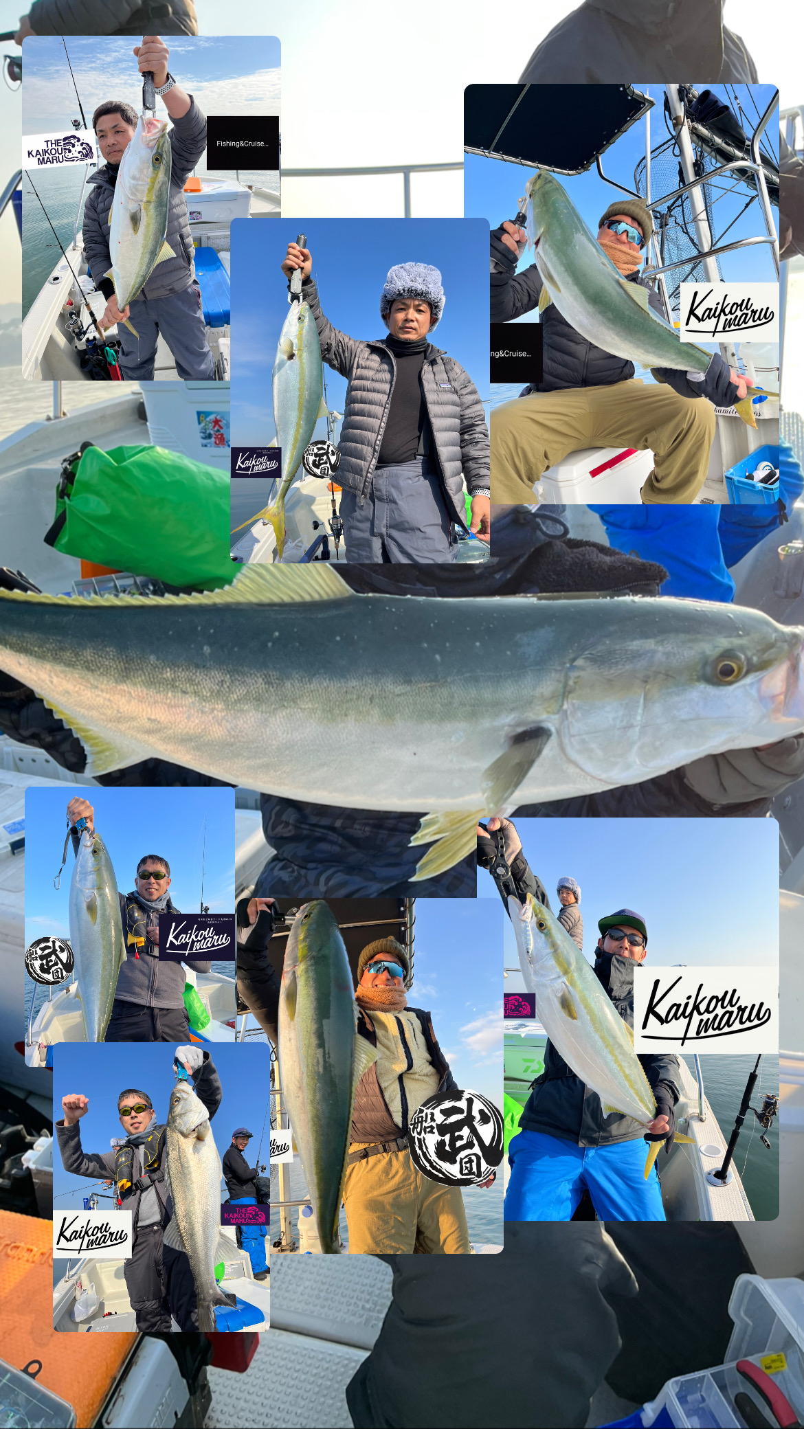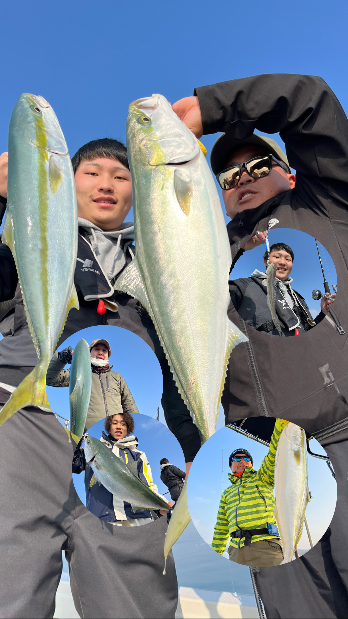 ?アジ~泳がせ? 開始から中アジ・小アジ ポツポツ釣れていて 早々エサは確保できました?? その後 巻き上げ途中でハリス切れが多くなったので 泳がせ始めたらすぐにhit❗ ブリget?✨ 少しの時間帯だったので 間に合った方だけでした? 風強い中 本日は乗船して頂き ありがとうございました?♂️ またのお越しをお待ちしております?♂️