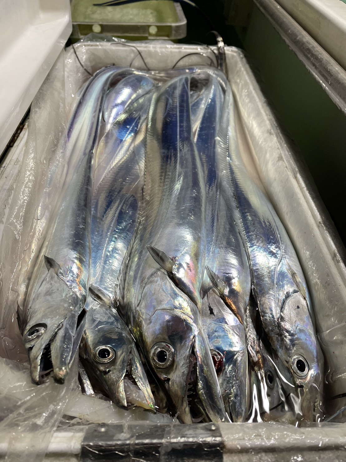 遠征タチウオ連戦。 昼頃荒れる予報なので少し早めに出発しました。 前日より平均サイズも上がり良い感じ。 後半少しペースが落ち、早めに納竿したのもあってトップ40本くらいでした。 帰りは何とか大荒れになる前に帰れたので外にいた方も皆さん全然濡れずにすみました。 今日も一日ありがとうございました。