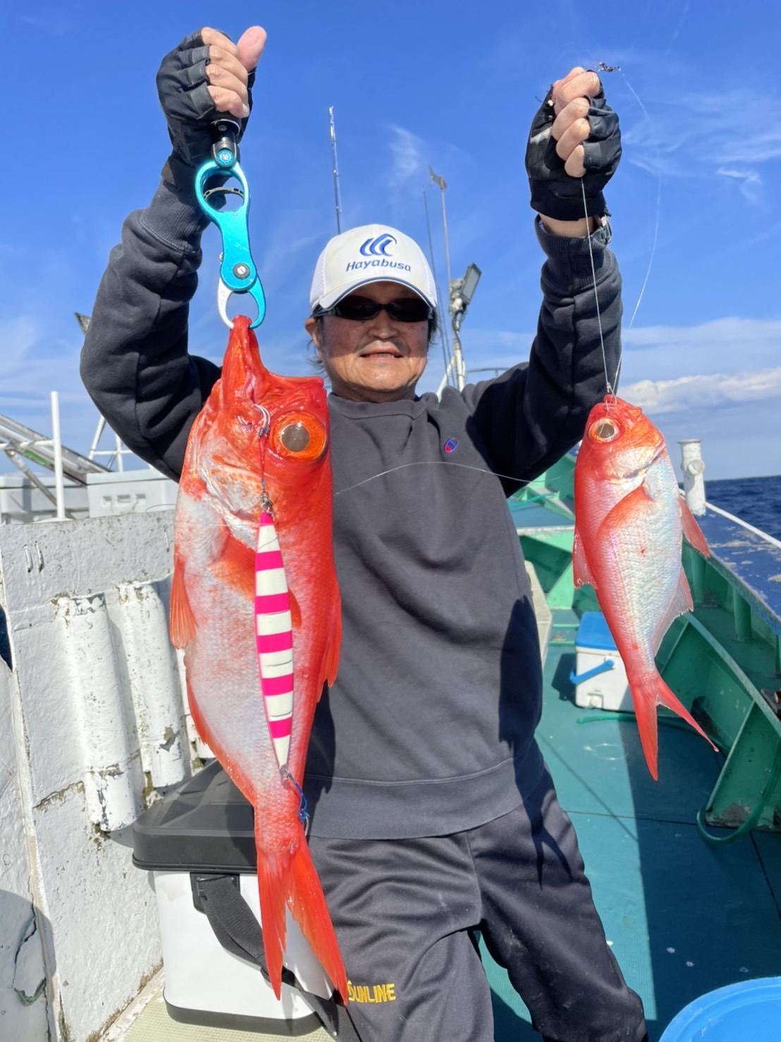🎣遠征中深海スロージギング🎣 キンメダイ、ナンヨウキンメ(イタキンメ) クロムツ、ギンメ、ユメカサゴ 色々釣れました😊👌 朝マヅメ キンメダイ、ナンヨウキンメ(イタキンメ) 当たり良し❗ クロムツ サイズ揃っていて全部良型です👍✨ 潮の流れ緩すぎだったので もう少し流れがほしかったです💦💦 本日は乗船して頂き ありがとうございました🙇♂️ またのお越しをお待ちしております🙇♂️