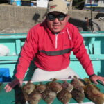 潮が小さくなりまたイイダコへ。 朝は雨風だったので少し遅らせて出港。 いつもより時間が短かったのですがトップ70匹でした。 普通に行けてたら100匹超えてましたね。 今日も一日ありがとうございました。