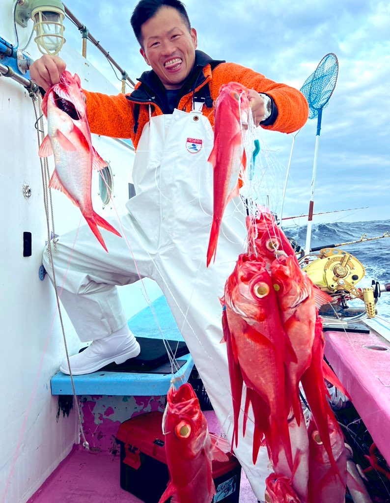 🎣遠征中深海スロージギング🎣 キンメダイ、ナンヨウキンメ(イタキンメ) クロムツ、ギンメ、ユメカサゴ 色々釣れました😊👌 朝マヅメ キンメダイ、ナンヨウキンメ(イタキンメ) 当たり良し❗ クロムツ サイズ揃っていて全部良型です👍✨ 潮の流れ緩すぎだったので もう少し流れがほしかったです💦💦 本日は乗船して頂き ありがとうございました🙇♂️ またのお越しをお待ちしております🙇♂️