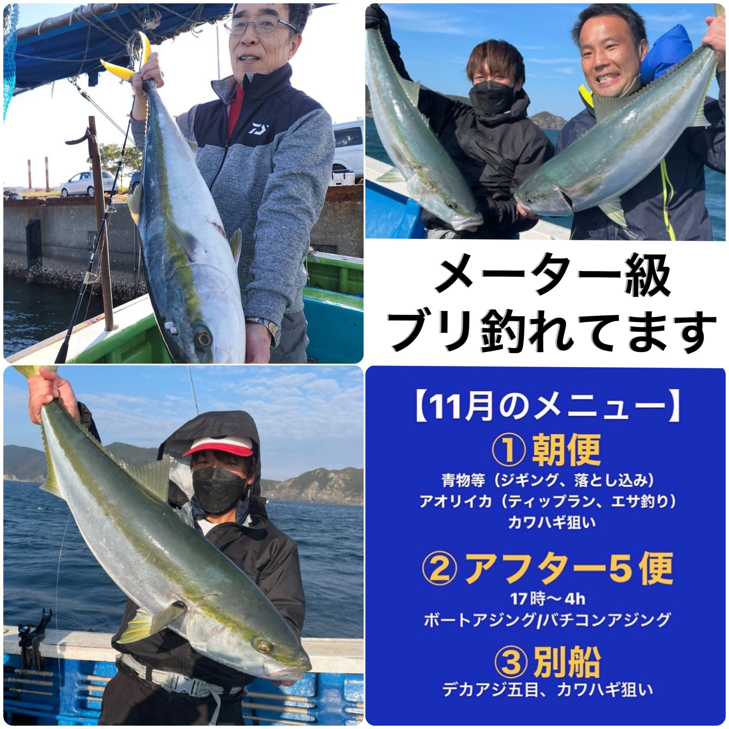 9/28釣果報告 本日もライトジギング釣行でした😃 まずはSLJ(ブレードゲーム)から開始😁 サゴシやマダイ、トラフグがつれましたが、う〜ん💦って感じでした・・・ それからポイント移動してライトジギングに変更😃 ハマチは釣れませんでしたが、ヤズが流す毎に爆釣でした✨✨ ※後半は、〆るのが大変で写真撮影無しとさせて頂きました😅 本日は、遊漁船流星をご利用頂き誠にありがとうございました🙇♂️ またのご利用をお待ちしております😊