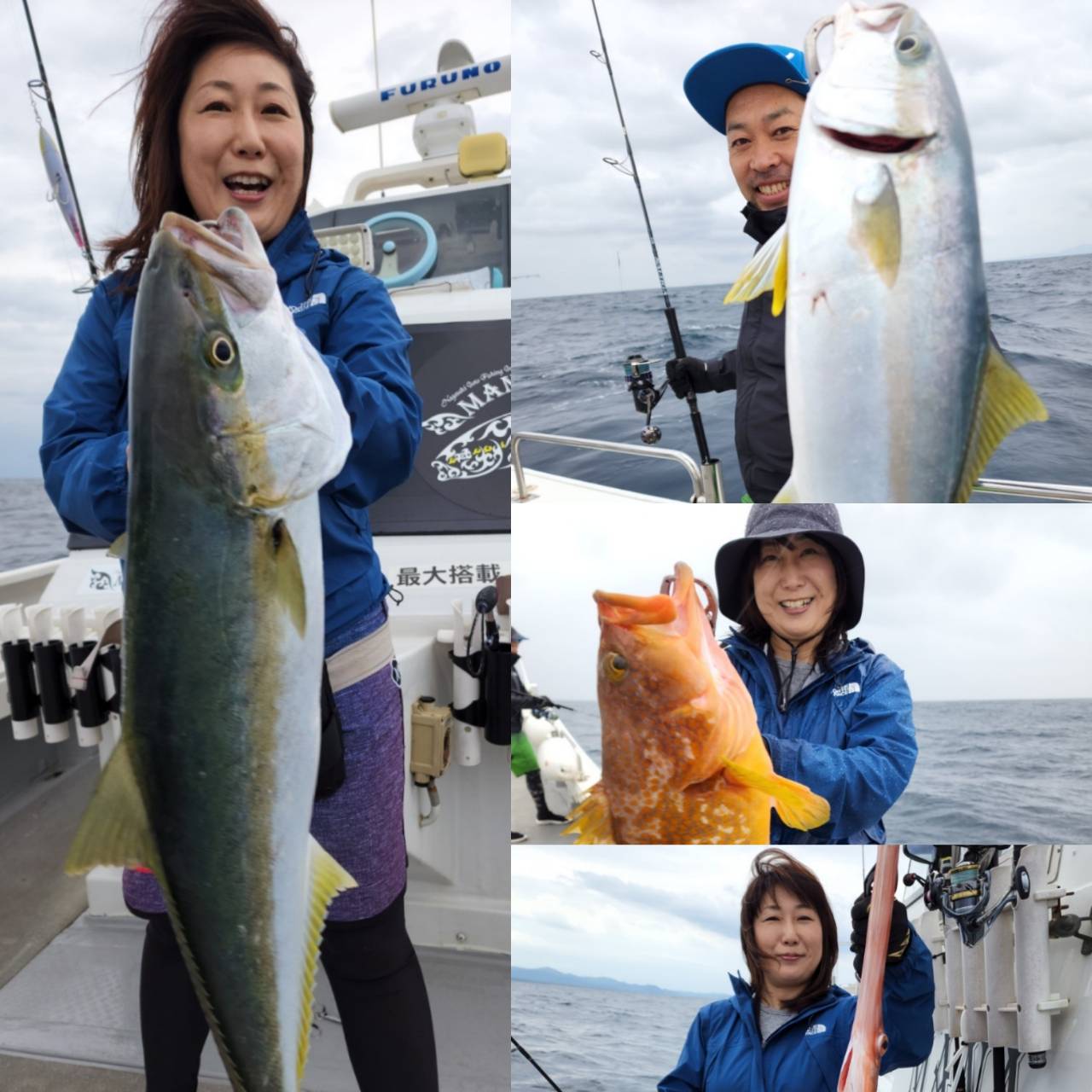 9/27釣果報告 本日もライトジギング+タイラバ釣行でした😃 本日は、風がやや強い予報だったので、前日にお客様と相談させて頂いた結果、出船の運びとなりました😊 本当に、ありがとうございます🙇♂️ 遠方から来られるお客様もいらっしゃるので是非釣って頂きたい🙏 6:00前に出船し、ポイントへ向かうと羽山島を超えると、まあまあの風と波・・・💦 今日は、操船+魚を〆るのがやっとで写真を撮れませんでした🙏 ブリらしき大型も掛かりましたがラインブレイクで2回バレてしまいました。残念・・・ 最終的にハマチ2匹、マダイ9匹、40cm弱のアコウ2匹、サゴシ1匹でした。 いい釣果とならず申し訳ありませんでした🙏 本日は、遊漁船流星をご利用頂き誠にありがとうございました🙇♂️ またのご利用をお待ちしております😊