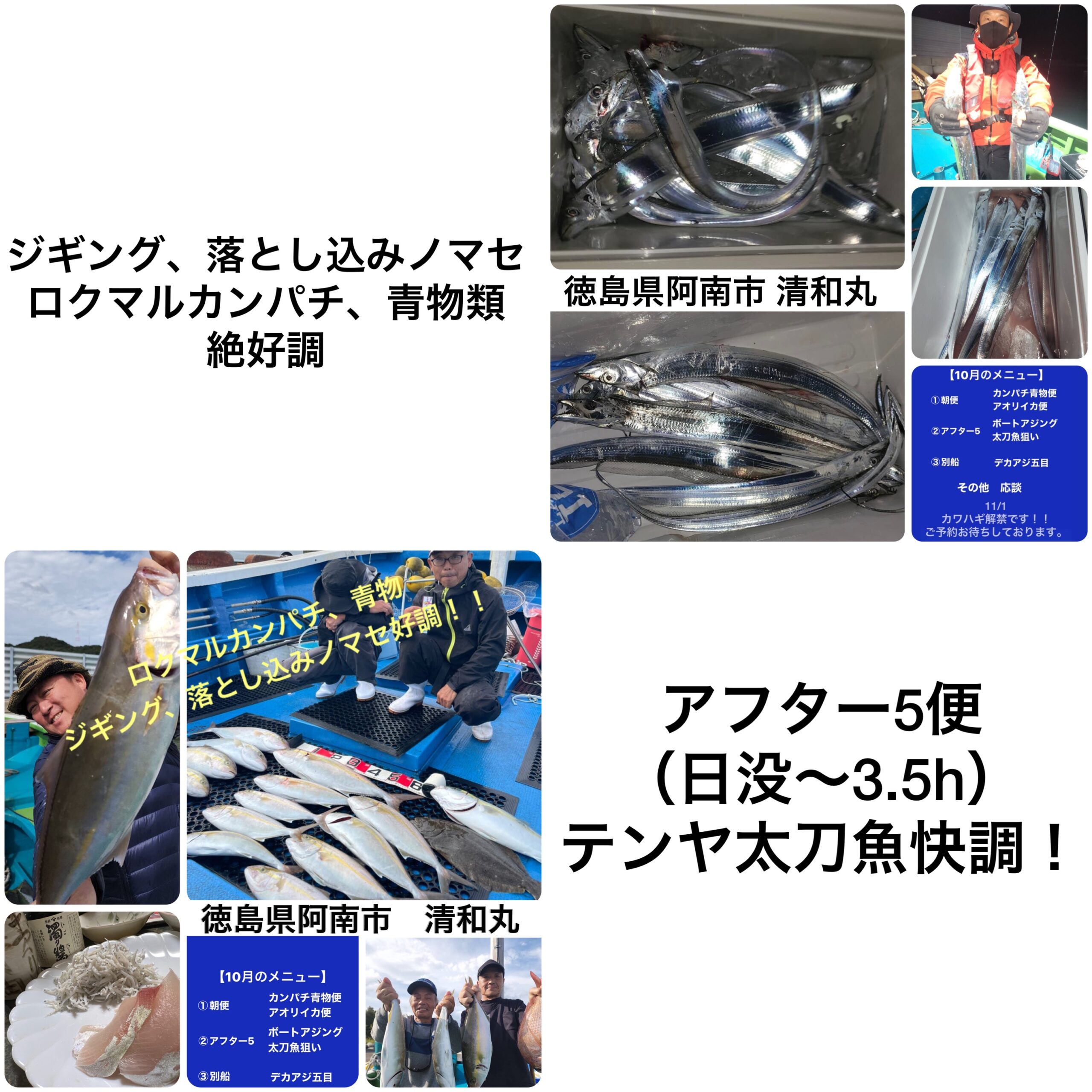 本日青物スタートノマセで入れ食い。まだまだ釣れてましたがお腹いっぱいという事でタチウオに移動。タチウオもいいサイズゲット。帰り際にカワハギ少ししましたが当たりは多いものの難しく終了。ありがとうございました。また宜しくお願いします。