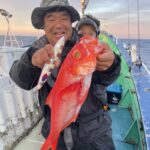 🎣遠征中深海スロージギング🎣 キンメダイ、ナンヨウキンメ(イタキンメ) クロムツ、ギンメ、ユメカサゴ 色々釣れました😊👌 朝マヅメ キンメダイ、ナンヨウキンメ(イタキンメ) 当たり良し❗ クロムツ サイズ揃っていて全部良型です👍✨ 潮の流れ緩すぎだったので もう少し流れがほしかったです💦💦 本日は乗船して頂き ありがとうございました🙇♂️ またのお越しをお待ちしております🙇♂️