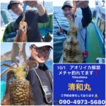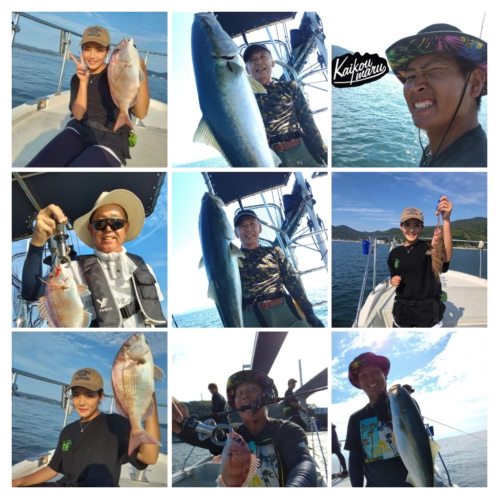 9/27釣果報告 本日もライトジギング+タイラバ釣行でした😃 本日は、風がやや強い予報だったので、前日にお客様と相談させて頂いた結果、出船の運びとなりました😊 本当に、ありがとうございます🙇♂️ 遠方から来られるお客様もいらっしゃるので是非釣って頂きたい🙏 6:00前に出船し、ポイントへ向かうと羽山島を超えると、まあまあの風と波・・・💦 今日は、操船+魚を〆るのがやっとで写真を撮れませんでした🙏 ブリらしき大型も掛かりましたがラインブレイクで2回バレてしまいました。残念・・・ 最終的にハマチ2匹、マダイ9匹、40cm弱のアコウ2匹、サゴシ1匹でした。 いい釣果とならず申し訳ありませんでした🙏 本日は、遊漁船流星をご利用頂き誠にありがとうございました🙇♂️ またのご利用をお待ちしております😊