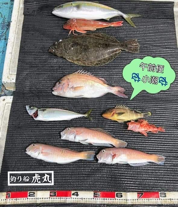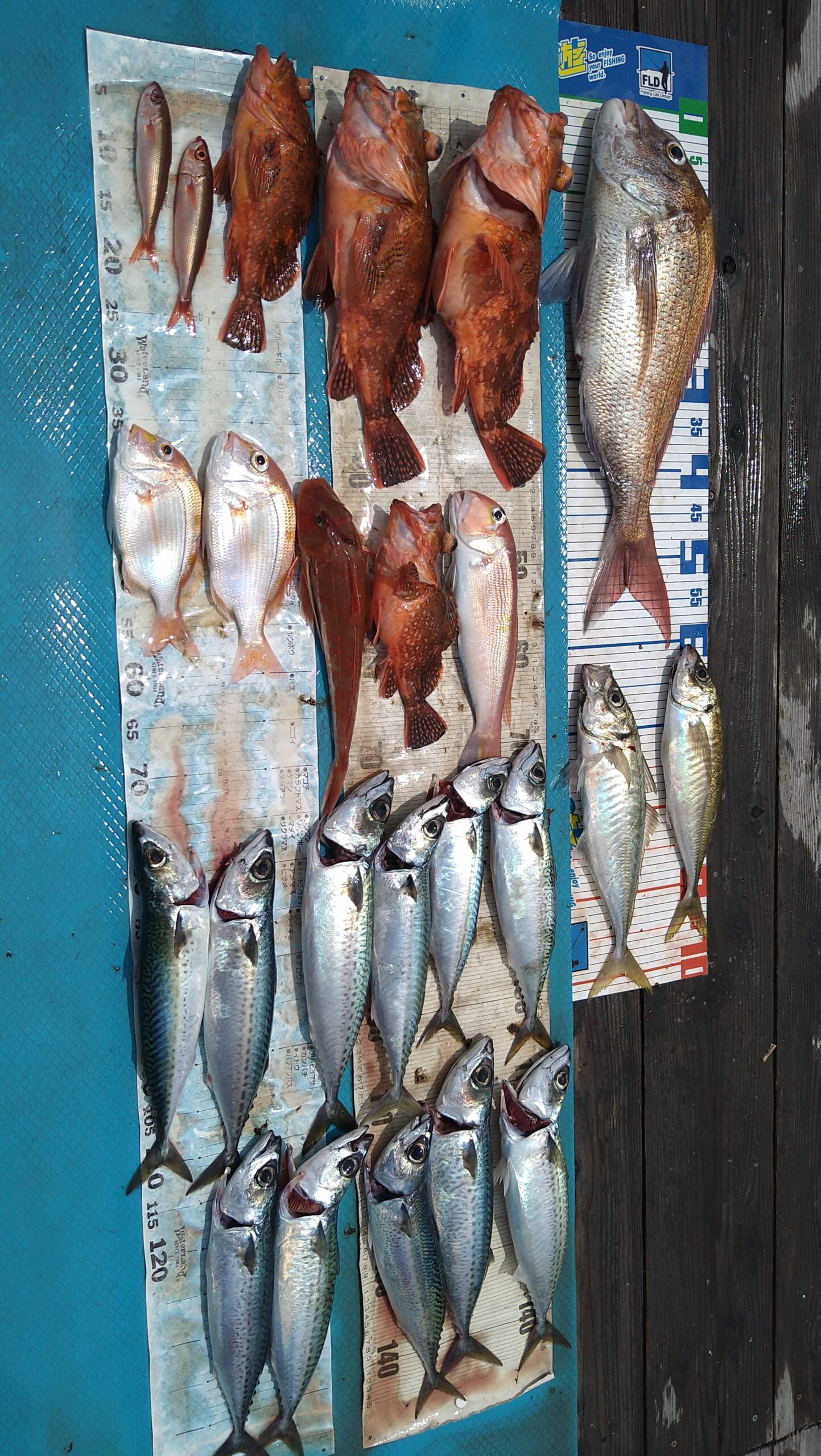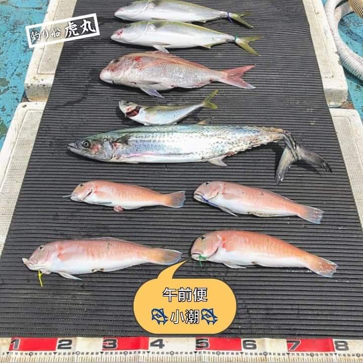9/27釣果報告 本日もライトジギング+タイラバ釣行でした😃 本日は、風がやや強い予報だったので、前日にお客様と相談させて頂いた結果、出船の運びとなりました😊 本当に、ありがとうございます🙇♂️ 遠方から来られるお客様もいらっしゃるので是非釣って頂きたい🙏 6:00前に出船し、ポイントへ向かうと羽山島を超えると、まあまあの風と波・・・💦 今日は、操船+魚を〆るのがやっとで写真を撮れませんでした🙏 ブリらしき大型も掛かりましたがラインブレイクで2回バレてしまいました。残念・・・ 最終的にハマチ2匹、マダイ9匹、40cm弱のアコウ2匹、サゴシ1匹でした。 いい釣果とならず申し訳ありませんでした🙏 本日は、遊漁船流星をご利用頂き誠にありがとうございました🙇♂️ またのご利用をお待ちしております😊
