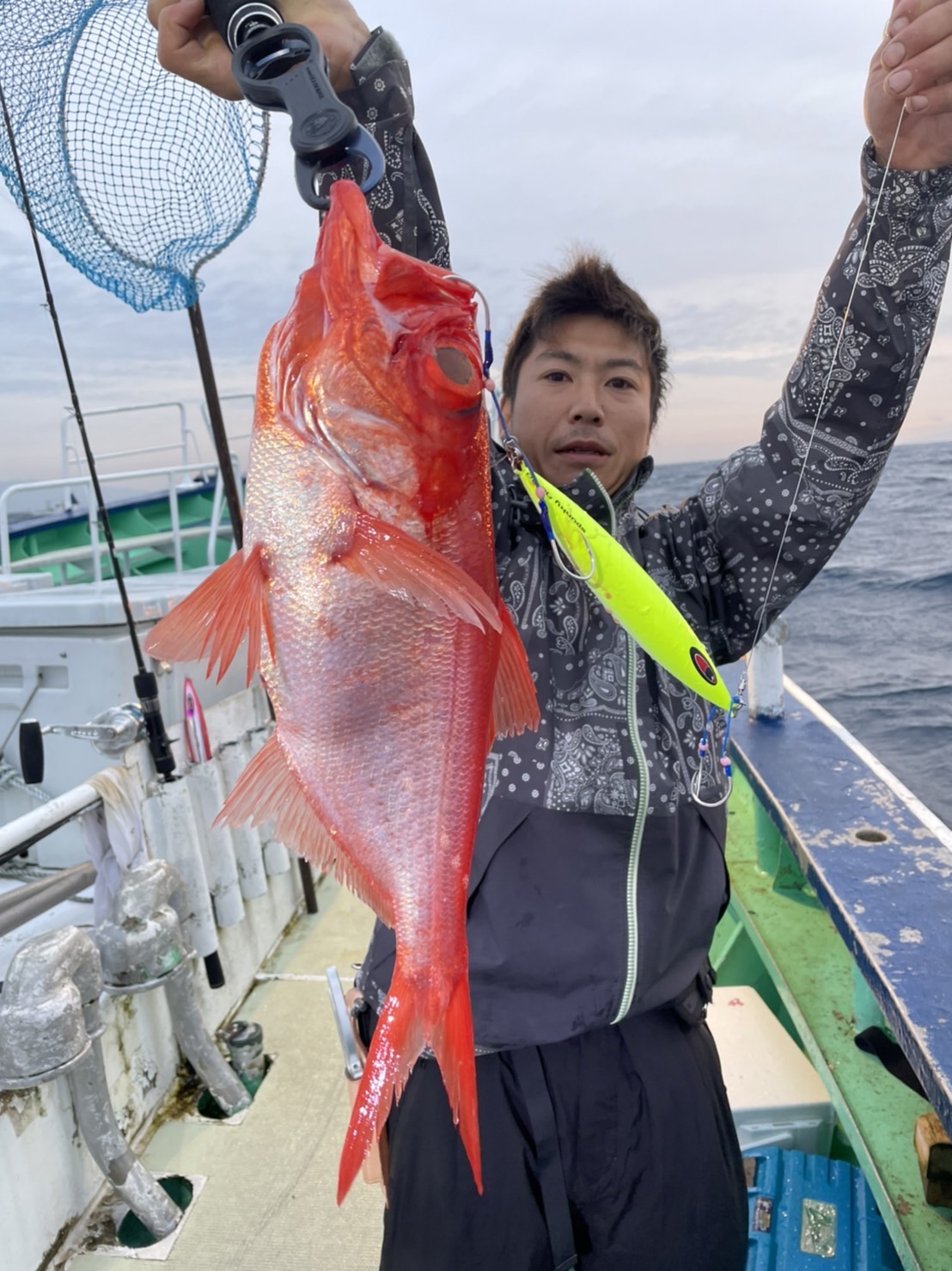 🎣遠征中深海スロージギング🎣 キンメダイ、ナンヨウキンメ(イタキンメ) クロムツ、ギンメ、ユメカサゴ 色々釣れました😊👌 朝マヅメ キンメダイ、ナンヨウキンメ(イタキンメ) 当たり良し❗ クロムツ サイズ揃っていて全部良型です👍✨ 潮の流れ緩すぎだったので もう少し流れがほしかったです💦💦 本日は乗船して頂き ありがとうございました🙇♂️ またのお越しをお待ちしております🙇♂️