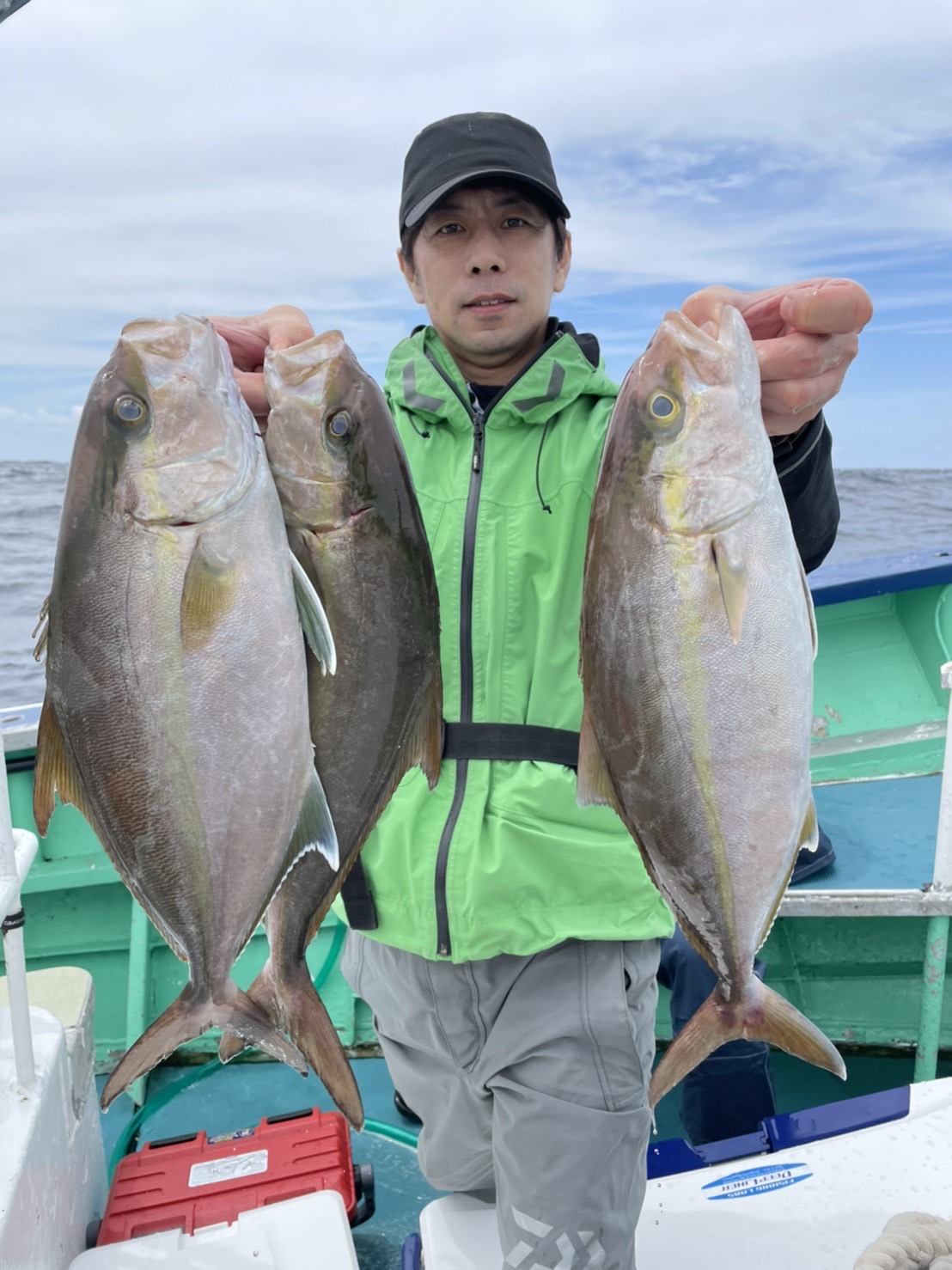 ?アジ~泳がせ? 開始から中アジ・小アジ ポツポツ釣れていて 早々エサは確保できました?? その後 巻き上げ途中でハリス切れが多くなったので 泳がせ始めたらすぐにhit❗ ブリget?✨ 少しの時間帯だったので 間に合った方だけでした? 風強い中 本日は乗船して頂き ありがとうございました?♂️ またのお越しをお待ちしております?♂️