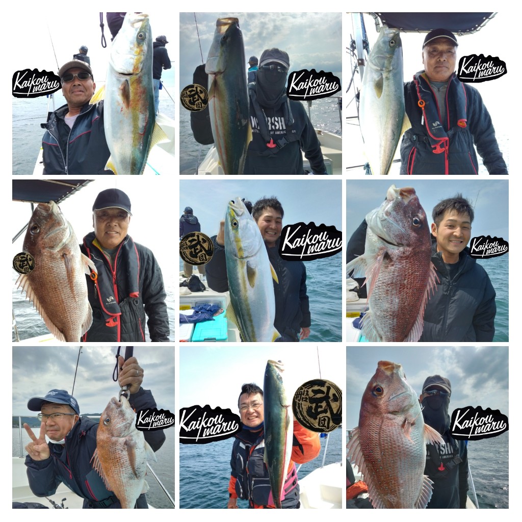 9/27釣果報告 本日もライトジギング+タイラバ釣行でした😃 本日は、風がやや強い予報だったので、前日にお客様と相談させて頂いた結果、出船の運びとなりました😊 本当に、ありがとうございます🙇♂️ 遠方から来られるお客様もいらっしゃるので是非釣って頂きたい🙏 6:00前に出船し、ポイントへ向かうと羽山島を超えると、まあまあの風と波・・・💦 今日は、操船+魚を〆るのがやっとで写真を撮れませんでした🙏 ブリらしき大型も掛かりましたがラインブレイクで2回バレてしまいました。残念・・・ 最終的にハマチ2匹、マダイ9匹、40cm弱のアコウ2匹、サゴシ1匹でした。 いい釣果とならず申し訳ありませんでした🙏 本日は、遊漁船流星をご利用頂き誠にありがとうございました🙇♂️ またのご利用をお待ちしております😊